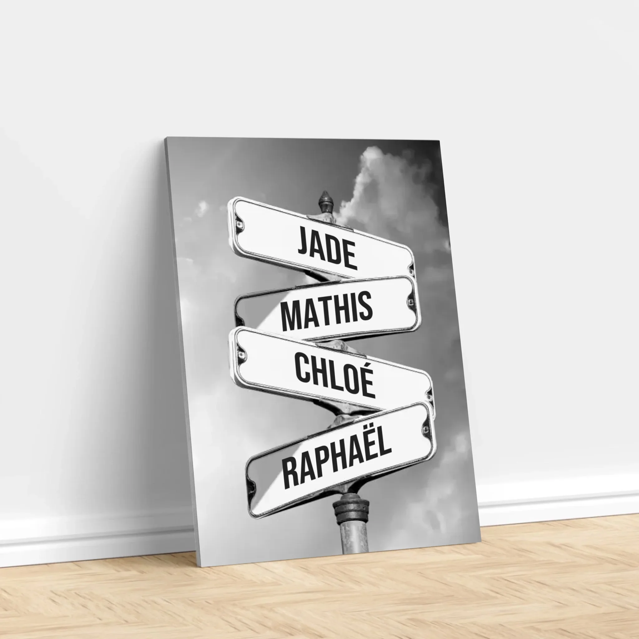 Toile personnalisée "Panneau de signalisation vintage pour les familles"